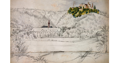 Bad Mühllacken mit der Ruine Oberwallsee (OA II 173/1). © OÖ. Landesmuseen