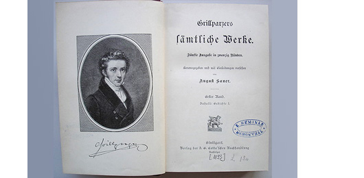 ![]() Fotografie von Franz Grillpazer vor 1872. Bildquelle: unbekannt Josef Grillparzer nützte diese Stiftung für seinen Sohn Wenzel, der als Zögling des Alumnats ein Jusstudium erfolgreich abschloss. Dass sein Vater diese Ausbildung trotz Fleiß und redlicher Arbeit aus eigenen Mitteln nicht hätte bestreiten können, zeigt eine Eingabe seines Sohnes, in der er nach der Entlassung aus dem Alumnat um eine weitere Unterstützung aus dem Stiftungsfond bittet. In Anbetracht der „ohnehin mittellosen Eltern“ und deren Tätigkeit für die Stiftung wurde diese auch gewährt. Nach Abschluss des Studiums wirkte Wenzel Grillparzer, der Vater des Dichters, als Advokat. Der Weg zu angemessenem Wohlstand und zur höheren Gesellschaft war geebnet. Seine Söhne konnten in diesen Verhältnissen aufwachsen. Der Dichter Franz Grillparzer und seine oberösterreichischen Wurzeln ![]() Franz Grillparzer; Porträtlithographie von Josef Kriehuber (1800-1876), 1841. Sammlung Peter Geymayer Aber auch in der urbanen Umgebung blieb das Erbe der Ahnen spürbar. In seiner Selbstbiographie charakterisiert Franz Grillparzer seinen Vater als verschlossenen Menschen mit ausgeprägtem Rechtsbewusstsein und besonderer Naturliebe. „Sein äußres Benehmen hatte etwas Kaltes und Schroffes, er vermied jede Gesellschaft, war aber ein leidenschaftlicher Freund der Natur. Früher einen eigenen, später einen gemieteten Garten selbst zu bearbeiten und Blumen aller Art zu ziehen, machte beinahe seine einzige Erheiterung aus.“ Und was Franz Grillparzer selbst betrifft, so wies der Wiener Universitätsprofessor Moriz Enzinger in seinen Vorlesungen stets darauf hin, dass der Dichter im Alter einem österreichischen Bauern sehr ähnlich sah. Zurück | Weiter | |