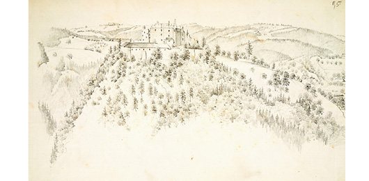 Bauten und Gartenanlagen, wie sie die Schmidtauer geschaffen haben, zeigt eine unsignierte Federzeichnung, die in den Jahren 1625 bis 1633 entstanden ist und in der Stiftsbibliothek Schlierbach aufbewahrt wird. Eine breite Auffahrt führt zum Schloss, das seinen Wehrcharakter verloren hat, im unteren Teil des Bildes ist die Brücke zu sehen, die als Äquadukt für die Schlosswasserleitung diente.