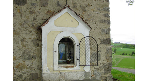 ![]() Die Hollnsteiner Kapelle in Oberwallsee. Bildquelle: Fotoklub Feldkirchen Bei der Linnemayr Kapelle in Freudenstein werden Gelübde, Wallfahrt und wundersame Heilung durch Bild und Text vermittelt. Der Überlieferung nach erblindete der junge Besitzer des Bauerngutes Michael Schönreiter plötzlich. Am Heimweg der Wallfahrt auf den Pöstlingberg kehrte das Augenlicht wieder zurück. An der Stelle, von der aus er seine Kinder vor dem Hoftor sah, wurde 1882 eine Kapelle gebaut zum Dank für die Gnade der Heilung. Aus Dankbarkeit nach Errettung aus schwerer Krankheit errichtete Gertrud Huber die Ortskapelle Lacken, die sie selber künstlerisch ausgestaltete. Auch der Dank der Gemeinde nach einer überstandenen Katastrophe ist in Gedenksteinen verewigt. Der Gedenkstein am Lausplatzl bei der Pesenbachbrücke wurde nach dem Hochwasser 2002 auf Initiative der Goldhaubengruppe errichtet und am 27. Juni 2003 feierlich geweiht. „Der Platz soll zum Ausruhn einladen , unsere Dankbarkeit ausdrücken und an die Schrecken des Hochwasses erinnern.“ (Peter Bruckmüller) Geschichte des Lebens ![]() Der Sierreiter Bildstock in Lacken. Bildquelle: Fotoklub Feldkirchen Zurück | Weiter | |